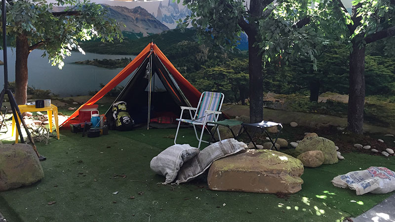A project thought out by Michel Gondry. An interactive space that invites the audience to film their own movie within the limits of the constructed sets/props/and costumes provided. A designer is chosen from every country the exhibit goes to and is asked to design possible spaces for fiction to happen.